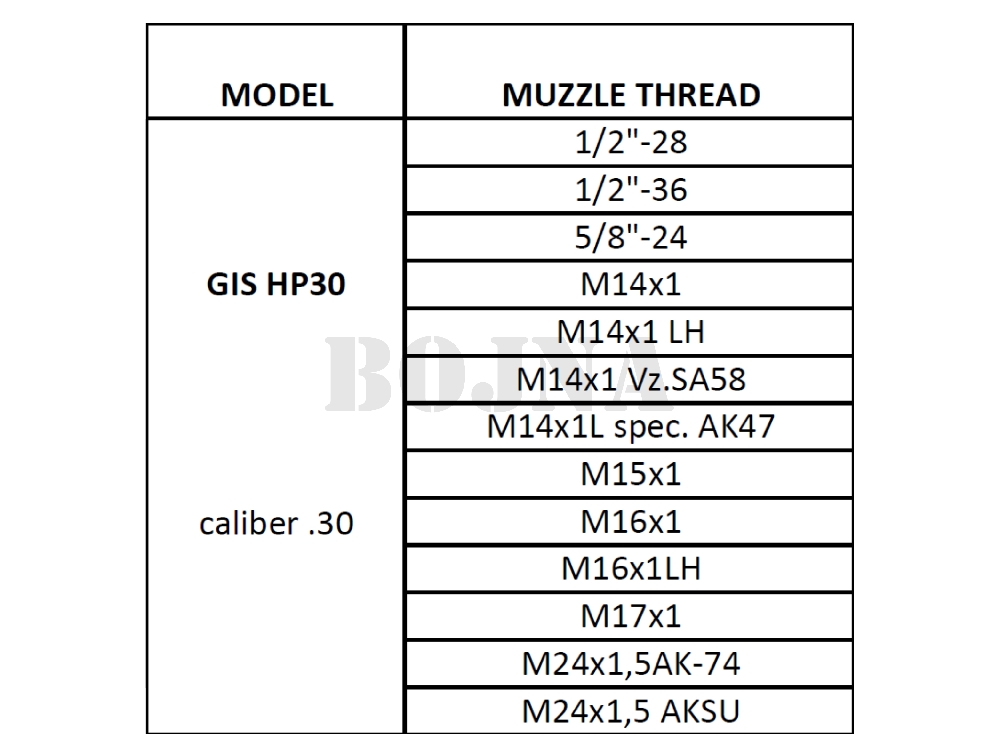 Popis raspoloživih navoja možete pronaći na fotografiji.